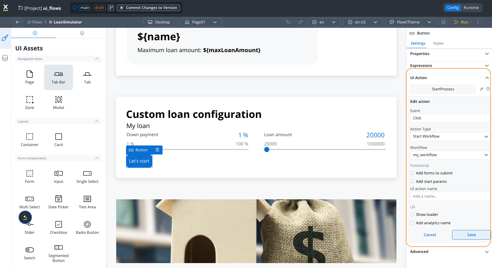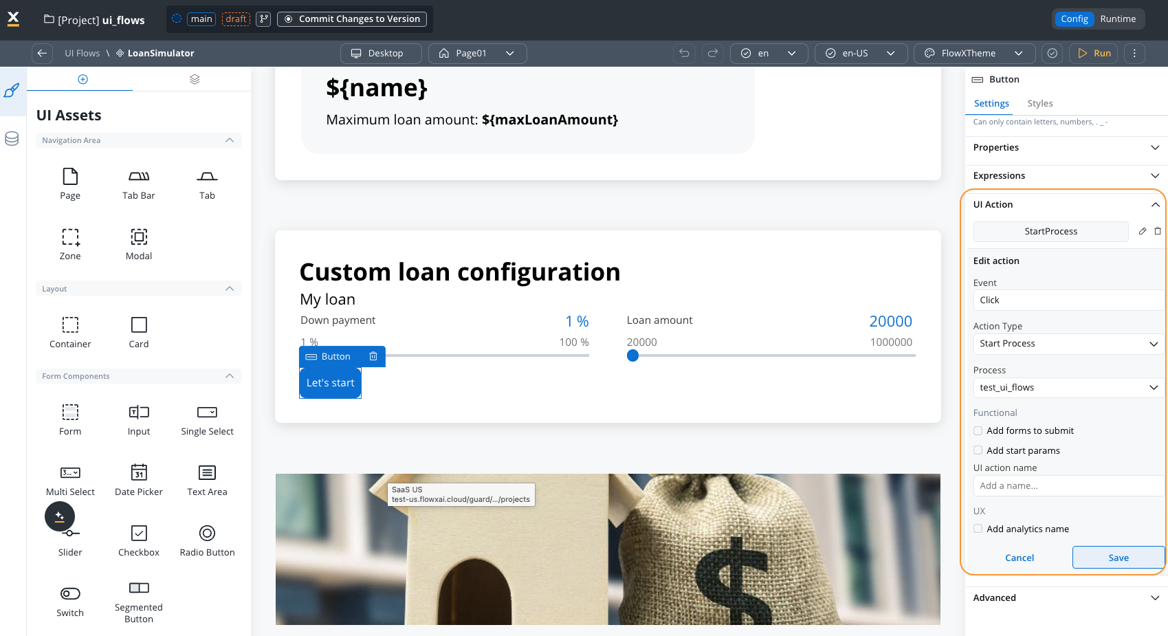 - Reusable UI integration: Integrate reusable UI components in UI Flows with input/output parameters and data mappers