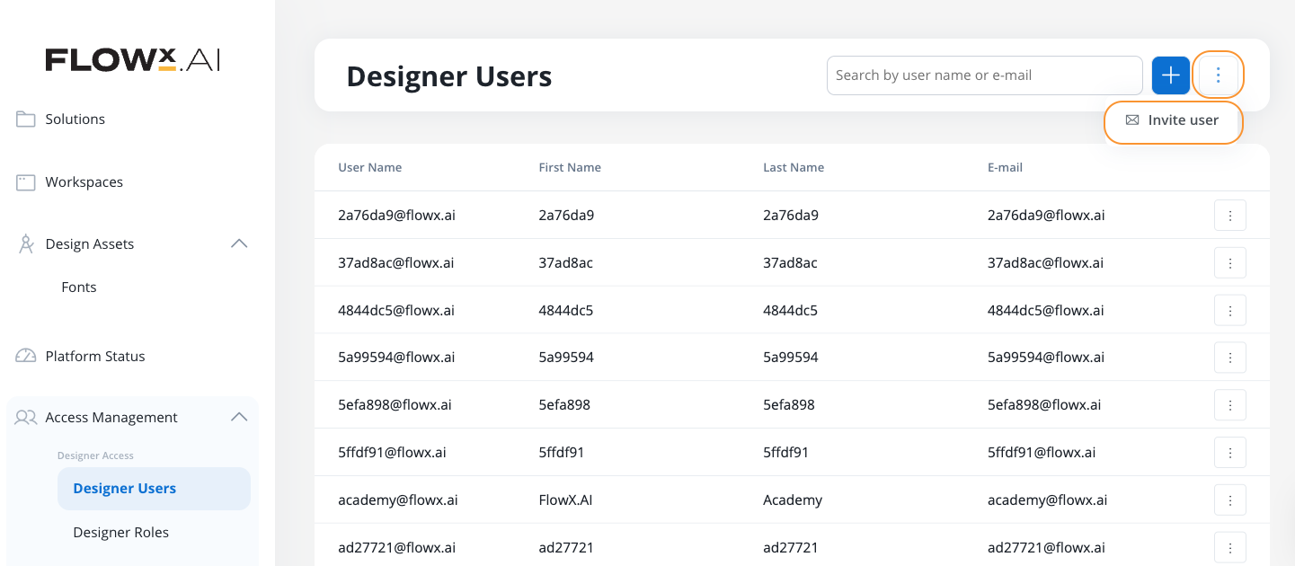 Organization Admins can invite designer users to their organization via email. Invited users receive a secure invitation link, can be pre-assigned roles and groups, and go through a guided activation flow before becoming active members.Only users with the Organization Admin role can invite new designer users.